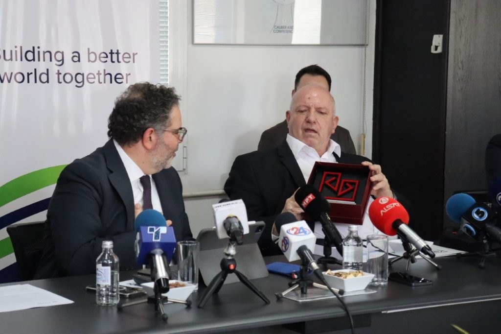On the occasion of the company’s 70th anniversary, during the visit to the factory, the President of the Chamber, Branko Azeski, presented CED Konstantinos Nikolaou with a Plaque as recognition for seven decades of successful operations of Titan Usje.