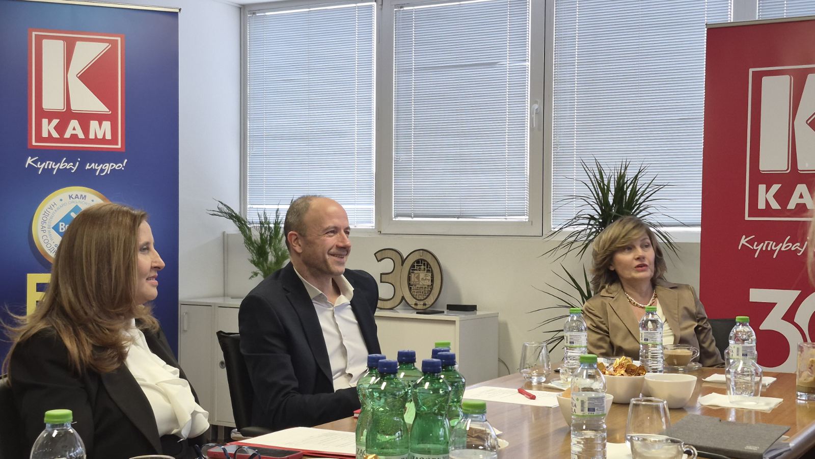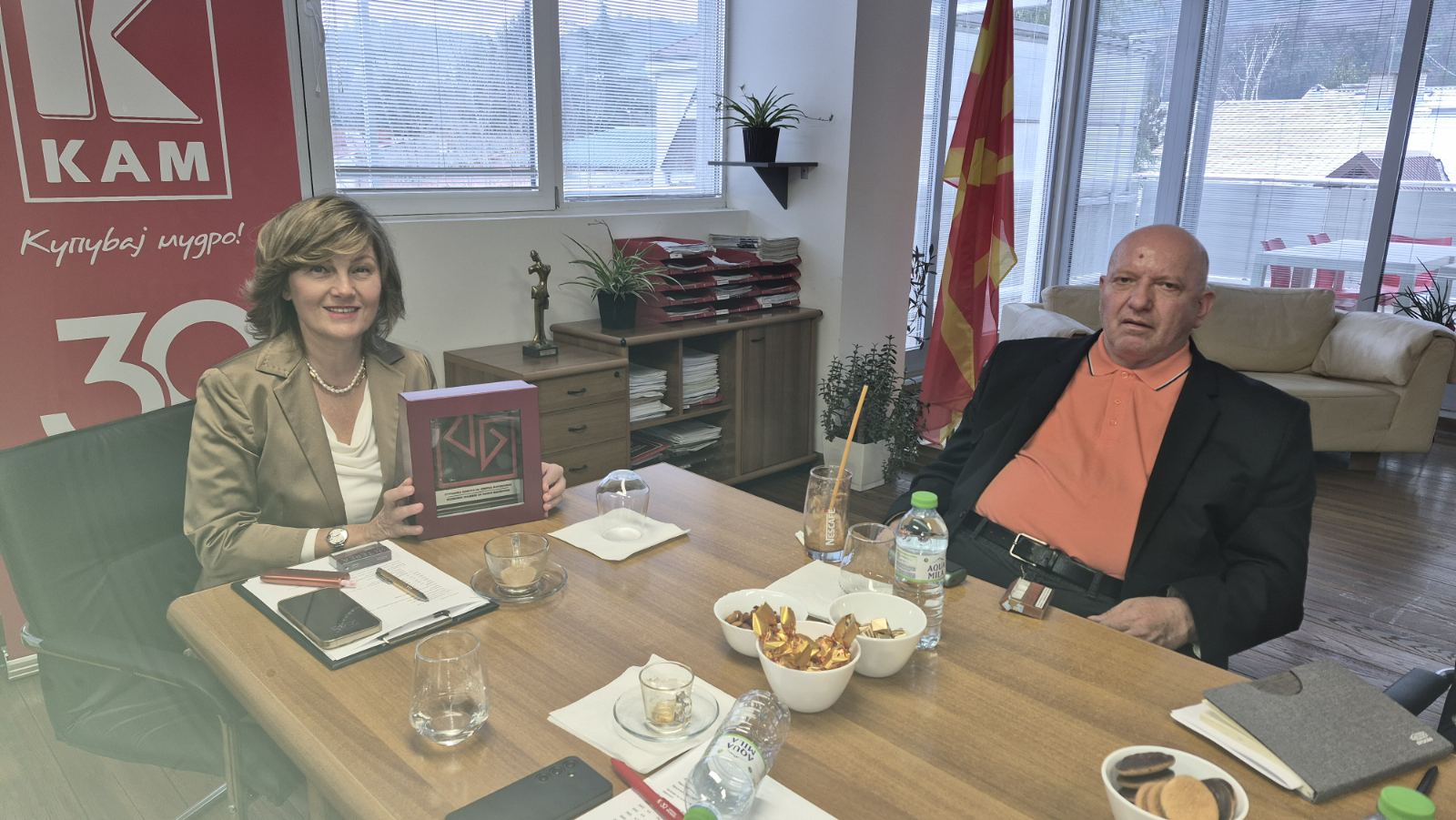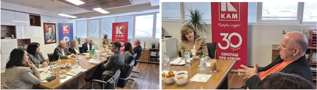 On the occasion of three decades of existence and successful operations, the President of the Economic Chamber, Branko Azeski, paid a working visit to the management of KAM. The discussions focused on the challenges faced by the company as one of the leading business entities in the retail trade sector, measured by several indicators, including number of employees, investments, turnover, low margins, and expansion into new markets outside the country, among others.