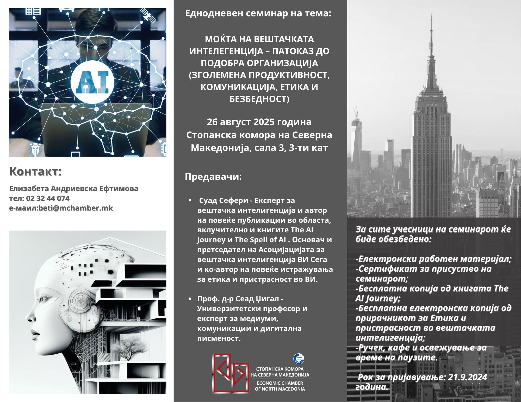 За сите учесници на семинарот ќе биде обезбедено: